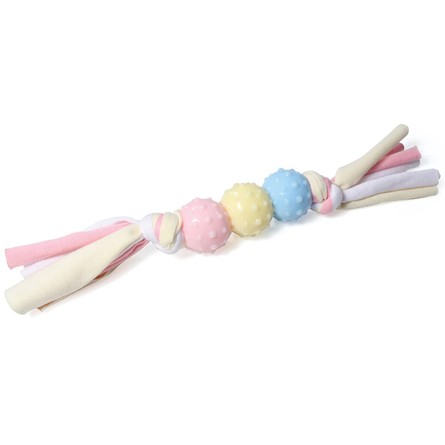 Прочная и гибкая, яркая и оригинальная – эта игрушка станет любимым развлечением для вашего питомца! Изделие выполнено из высококачественных материалов, что гарантирует безопасность животного. Игрушка отлично подходит для тяговых игр с маленьким питомцем, а фактурные мячики из термопластичной резины помогут поддерживать в тонусе жевательные мышцы, укреплять и очищать зубы питомца. Термопластичная резина отличается большей упругостью, эластичностью при низких температурах и более длительным эксплуатационным периодом. Такая резина мало подвержена химическому или термическому воздействию, не токсична и, в результате, обладает гипоаллергенными свойствами. Игрушка легко моется при помощи мыла и не требует особого ухода. Цвет: сочетание белого, светло-желтого, розового и голубого. Размер: d25мм*220мм.