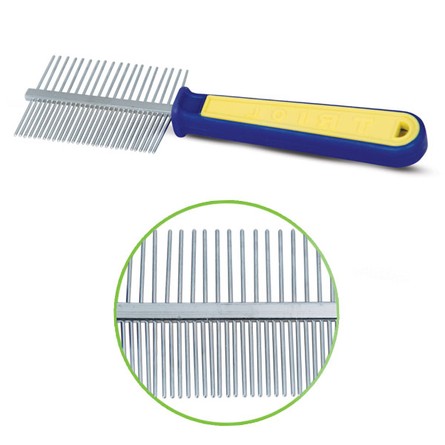 Двусторонняя расческа для животных серии "Спорт" идеально подходит для ухода за нежной, тонкой и гладкой шерстью питомцев. Используется для удаления уже выпавших волос и уменьшения линьки. Изделие имеет металлические зубцы (19/30), расположенные с двух сторон, и удобную пластиковую ручку. Размер изделия: 195х55х16мм. Упаковка: пакет с клапаном.