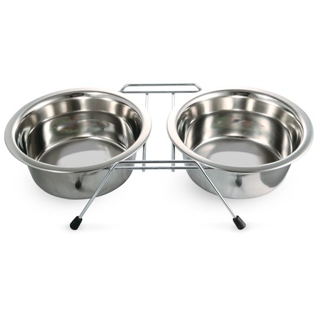 Этот функциональный комплект из двух универсальных круглых мисок для собак на подставке выполнен из нержавеющей стали высокого качества. Такие миски идеально подходят как для воды, так и для корма разной консистенции. Изделие комфортно для питомца и легко моется под струей проточной воды с использованием моющих бытовых средств. Объем: 2*0,2л. Размеры: 110*110*45мм.
