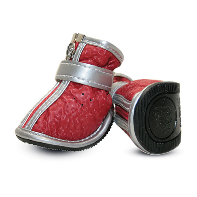 Ботинки для собак (комплект) с модным принтом и функциональной прорезиненной подошвой - незаменимый аксессуар индивидуальной защиты лап животного от воздействия агрессивных жидкостей, дорожных химреагентов, бензинов и масел на проезжей части дорог. Размер изделия: 40х30х40 мм. Цвет: серебряный.