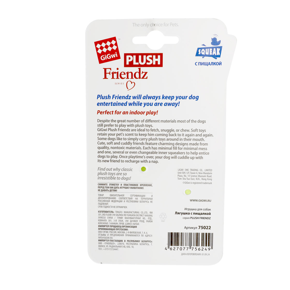 75022 Игрушка для собак Лягушка с пищалкой 9см, серия PLUSH FRIENDZ