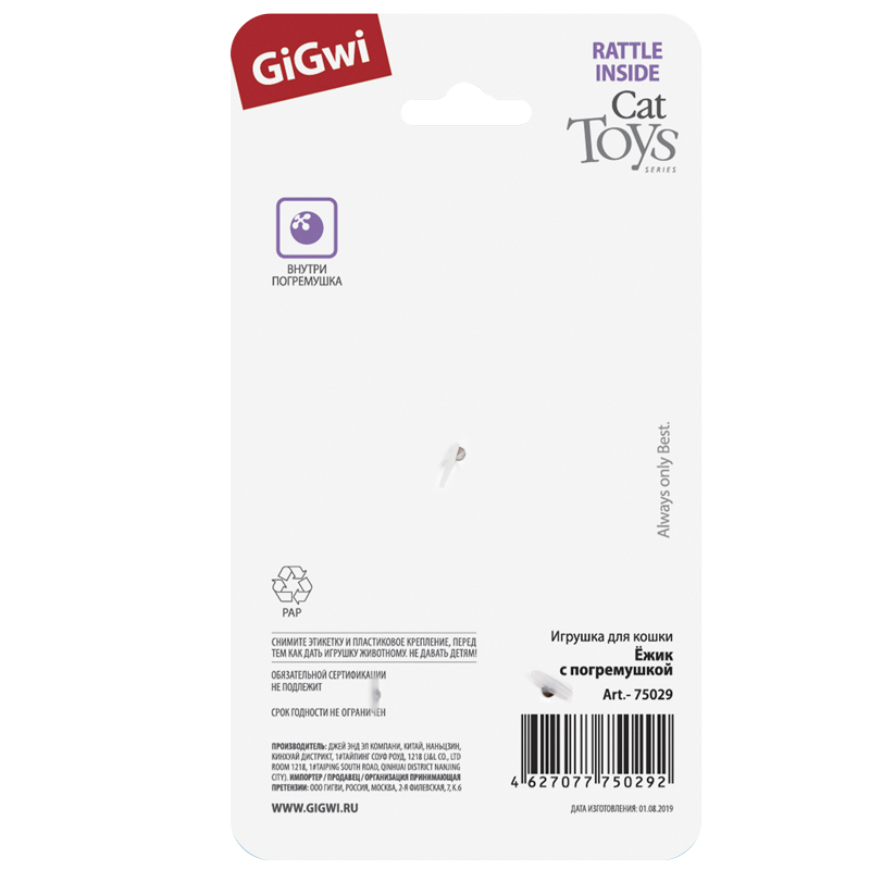 75029 Игрушка для кошек Ежик с погремушкой 7см, серия CATCH & SCRATCH, GiGwi