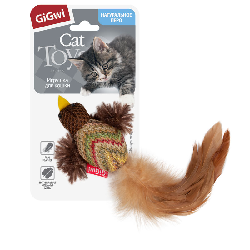 75264 Игрушка для кошек Птичка с перьями 12см, серия CATCH & SCRATCH, GiGwi