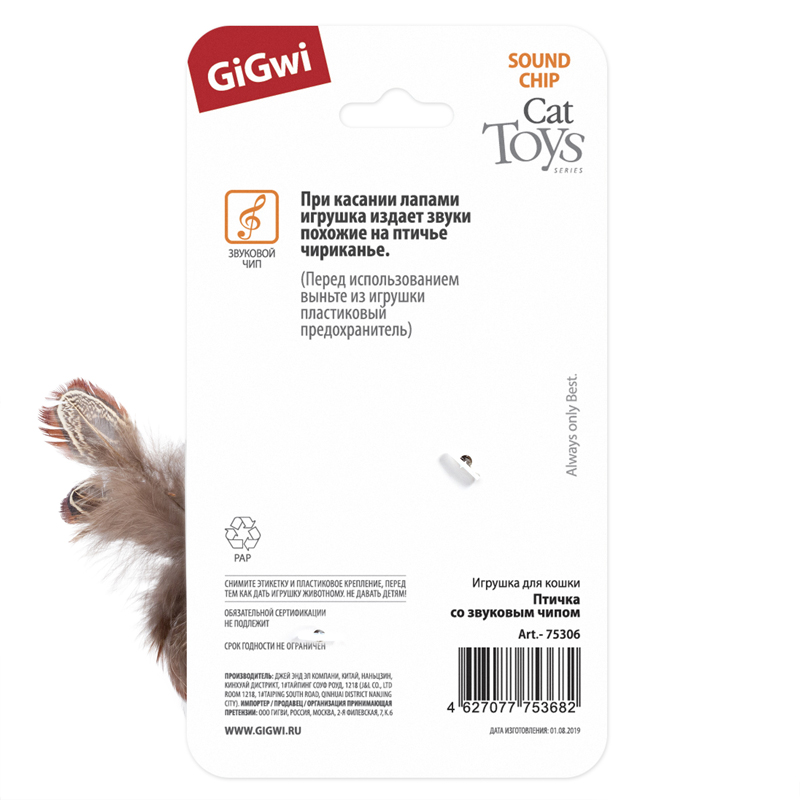 75223 Игрушка для кошек Птичка со звуковым чипом 6см, серия MELODY CHASER, GiGwi