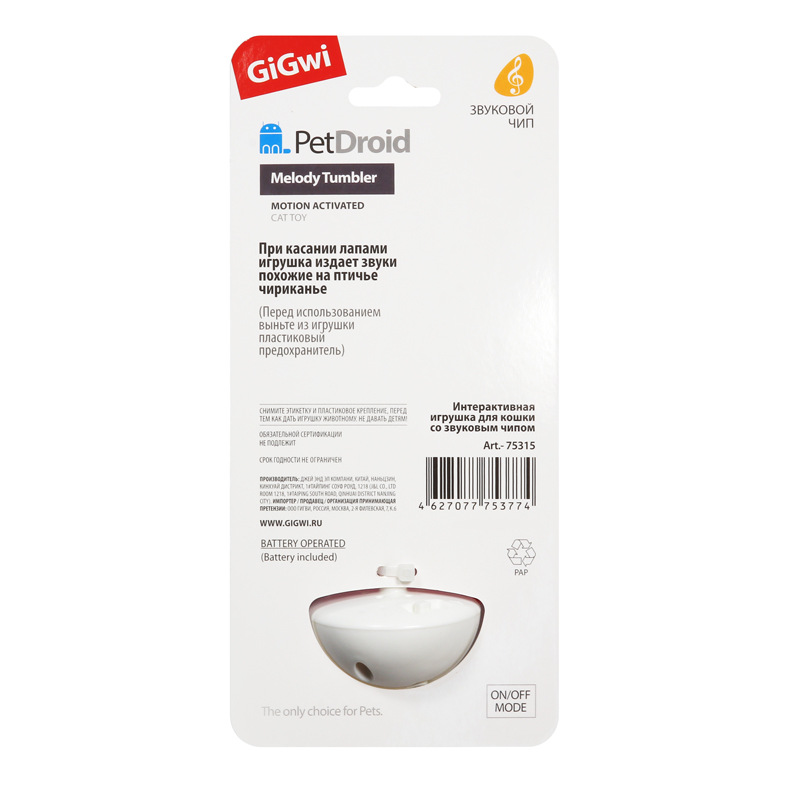 75315 Игрушка для кошек интерактивная Мелоди Тумблер со звуковым чипом 14см, серия PETDROID