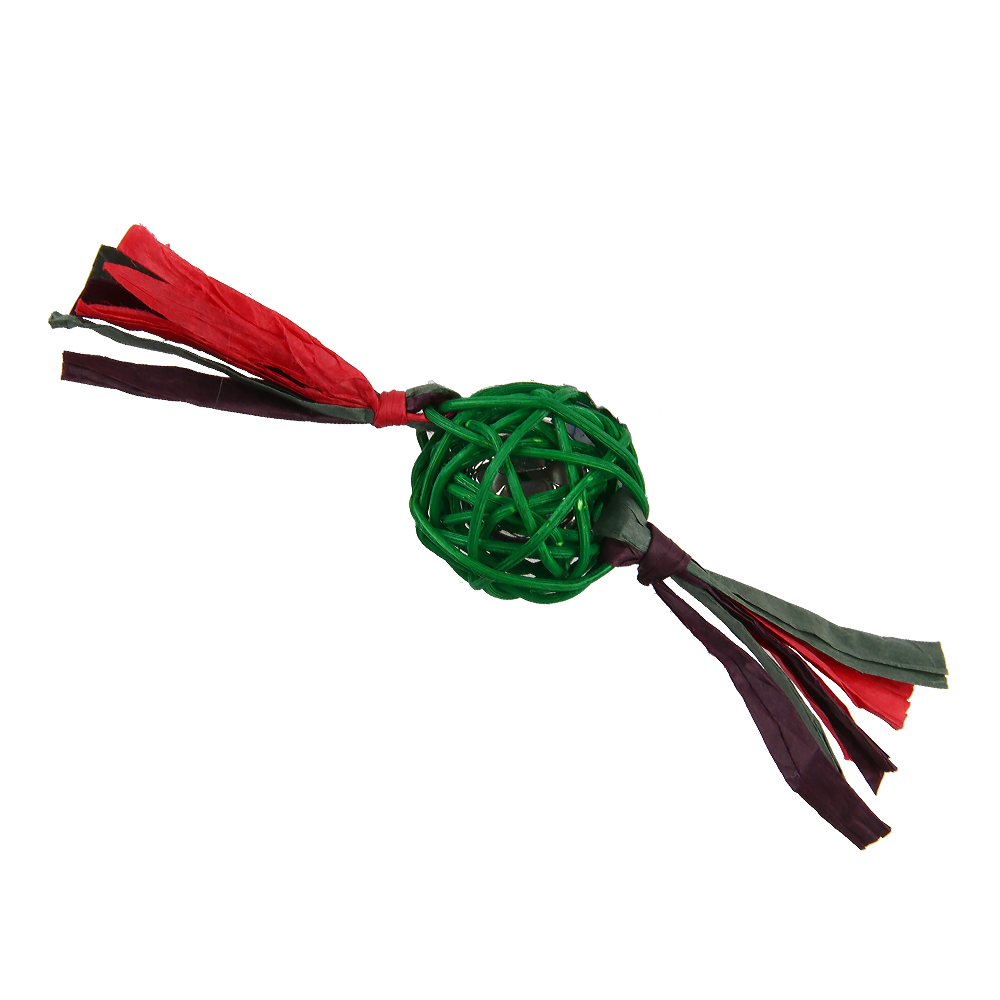 Игрушка для кошек "Плетеный мячик" дополнена колокольчиком и хвостиками из бумаги. Игрушки этой серии предназначены для удовлетворения охотничьих инстинктов вашего питомца. Яркая игрушка сразу привлечет внимание вашего любимца, не навредит здоровью и увлечет его на долгое время.