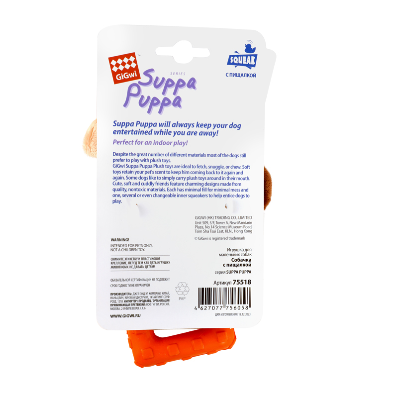 75518 Игрушка для маленьких собак Собачка с пищалкой 15см, серия SUPPA PUPPA