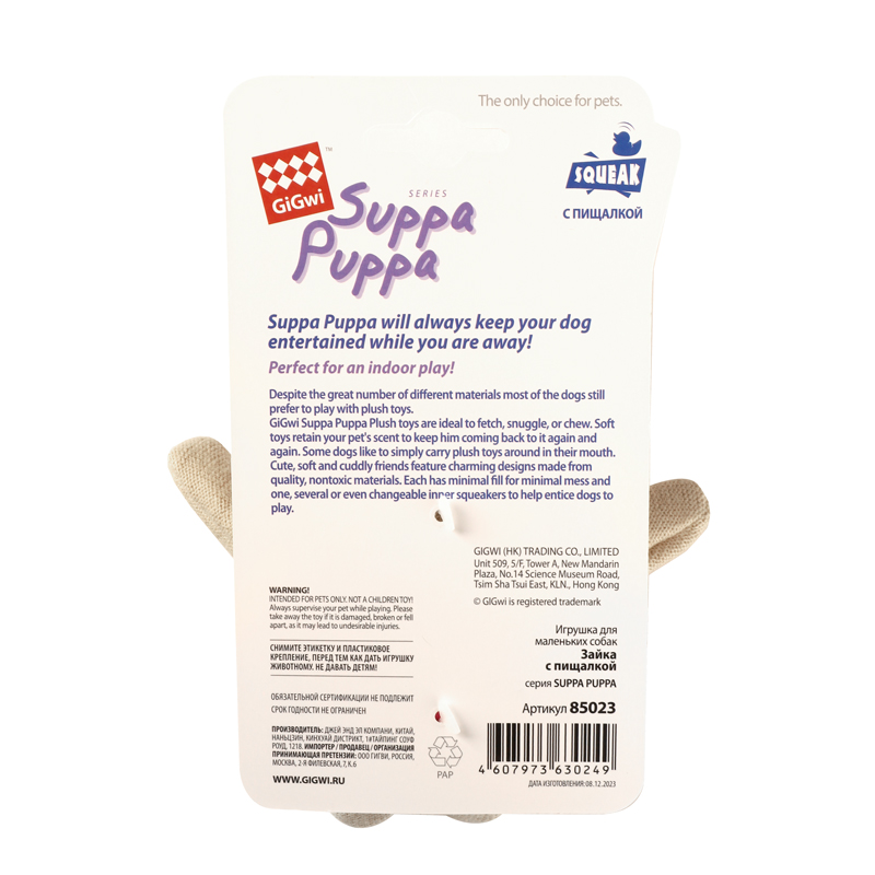 85023 Игрушка для маленьких собак Зайка с пищалкой 15 см, серия SUPPA PUPPA, GiGwi