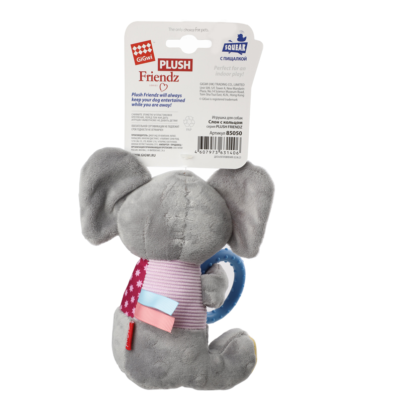 85050 Игрушка для собак Слон с кольцом 17 см, серия PLUSH FRIENDZ, GiGwi