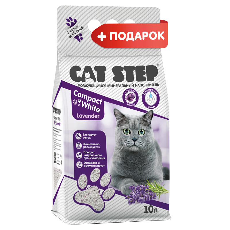 АКЦИЯ Наполнитель комкующийся минеральный CAT STEP Compact White Lavender, 10л