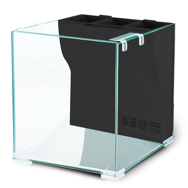 Аквариум из прозрачного стекла 9,4л. В комплекте покровное стекло. В фильтрующем отсеке аквариума расположена помпа мощностью 5Вт, 208л/ч для подачи воды в каскад,а также фильтрующий материал. В верхней части фильтрующего отсека размещены два контейнера для посадки растений.