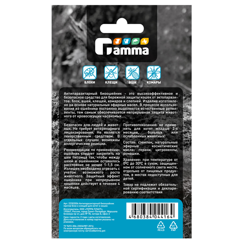 БИООШЕЙНИК для кошек от внешних паразитов, 350*9*3мм, Gamma