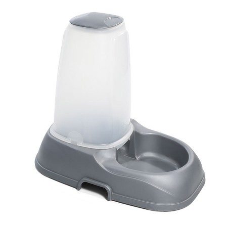 Автокормушка или автопоилка? Решать вам! Этот незаменимый для владельцев четвероногих питомцев аксессуар работает по принципу сообщающихся сосудов. Насыпьте в вертикальный стакан сухой корм, и он дозированно будет сыпаться в миску, не позволяя ей пустовать. Налейте в него воды, и под действием атмосферного давления жидкость порционно будет поступать в миску по мере выпивания ее животным. Использование такого устройства решит проблему долгого отсутствия хозяев, и питомец всегда будет сыт и напоен. Все элементы конструкции выполнены из качественного пластика и легко разбираются на составные части, что очень удобно при гигиенической обработке и транспортировке изделия. Цвет изделия: серебристый. Объем изделия: 1500мл. Размер изделия: 270*180*240мм; глубина миски: 35мм.