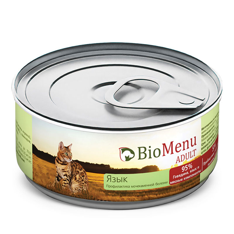 BioMenu ADULT Консервы д/кошек мясной паштет с Языком 95%-МЯСО 100гр*24