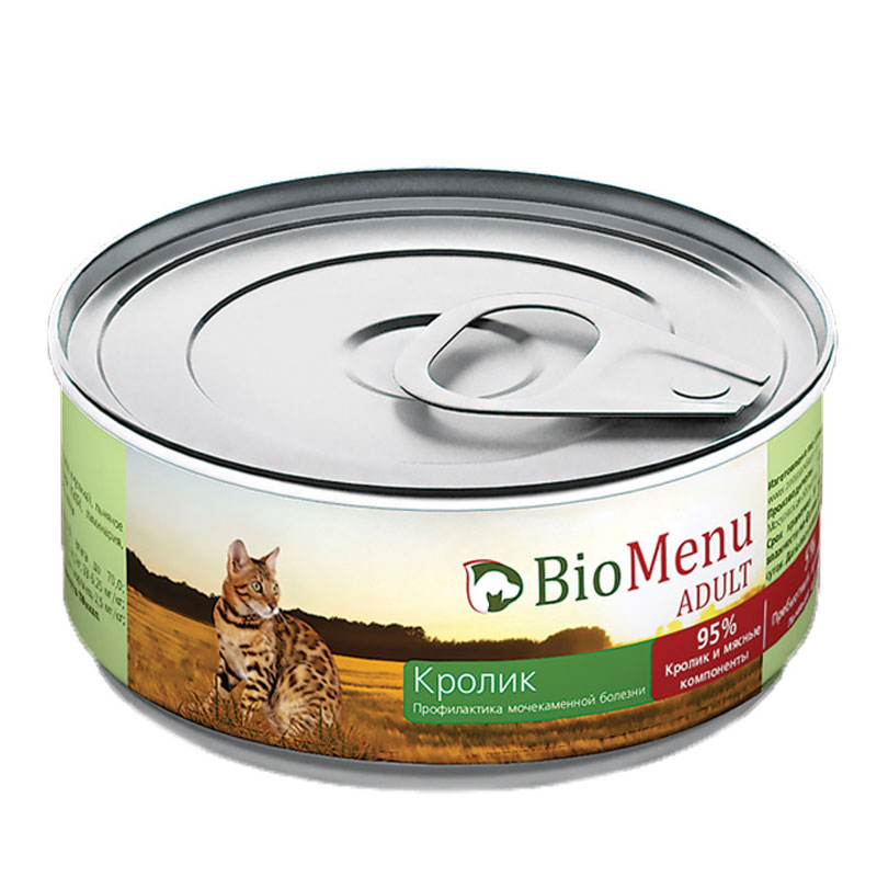 BioMenu ADULT Консервы д/кошек мясной паштет с Кроликом 95%-МЯСО 100гр*24