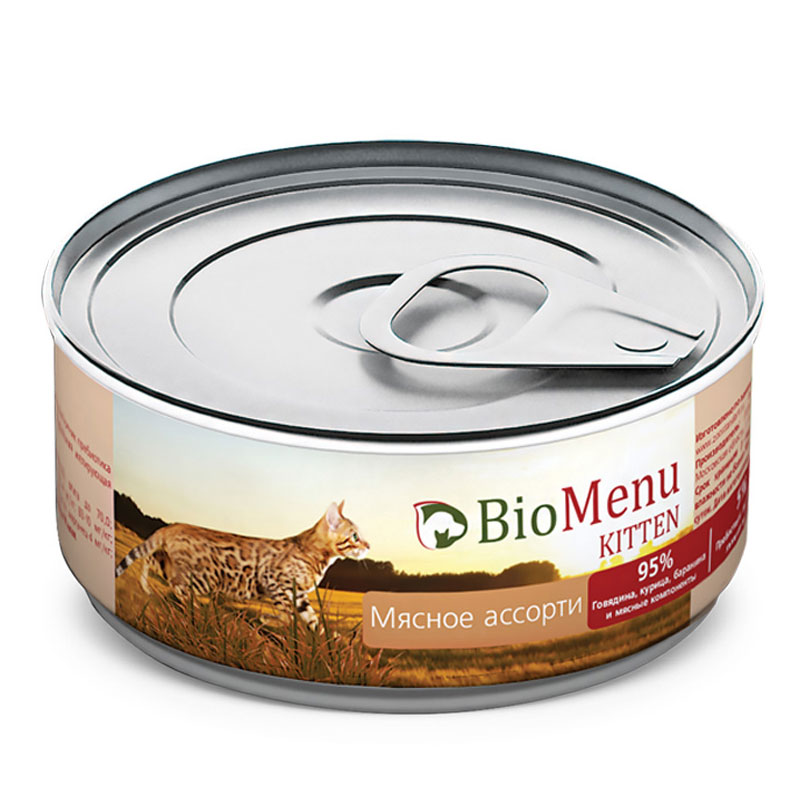 BioMenu KITTEN Консервы д/КОТЯТ паштет Мясное ассорти 95%-МЯСО 100гр*24