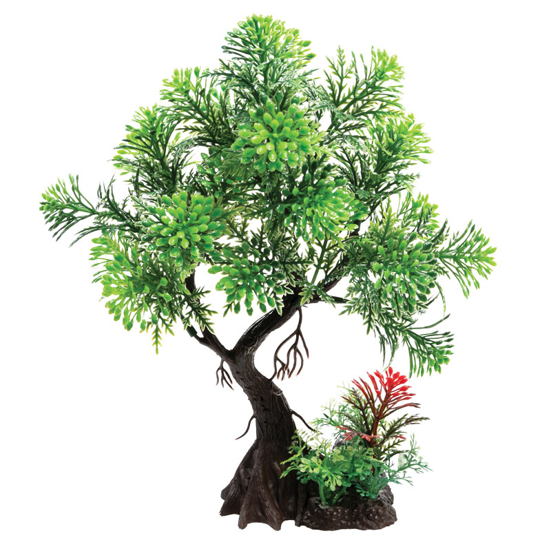 Растения - это не только завершающий штрих в оформлении, но и необходимый атрибут любого аквариума. Они придают трехмерность внутреннему пространству аквариума, а также служат дополнительным укрытием для небольших рыб, отвечая тем самым не только за эстетику, но и принося обитателям аквариума реальную пользу. Неоспоримое преимущество искусственных растений в том, что в них не заводятся паразиты и грибки, их легко мыть и дезинфицировать, и прослужат они неизмеримо дольше, чем живые растения. Изготовленная из нетоксичного пластика, эта привлекательная декорация в виде дерева подойдет для оформления любых типов пресноводных аквариумов.
