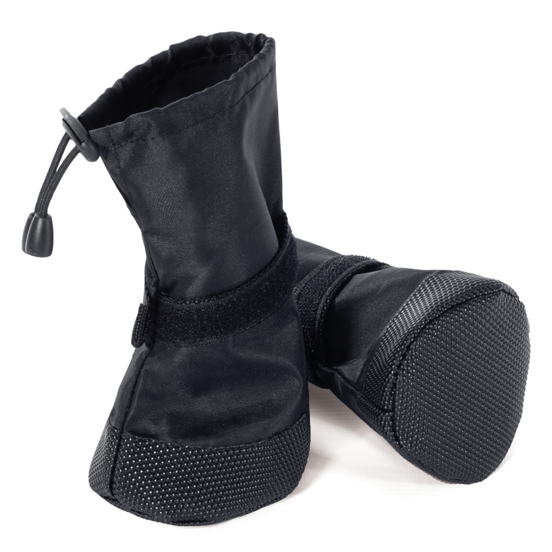 Ботинки для собак, стильный комплект - незаменимый аксессуар индивидуальной защиты лап животного от воздействия агрессивных жидкостей, дорожных химреагентов, бензинов и масел на проезжей части дорог. Размер изделия: 55х45х55 мм. Цвет: черный.