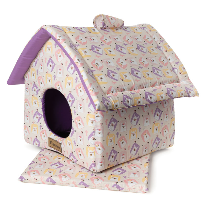 Мягкий дом-конура серии "Лама" - то, что нужно вашему питомцу для комфортного отдыха. Новинку украшает оригинальный авторский принт. В комплектацию домика также входит съемный двухсторонний матрас на поролоновой основе, который легко чистится и стирается в стиральной машине, а внутреннюю часть изделия украшает яркая ткань-компаньон. Размеры: 360*360*380мм.