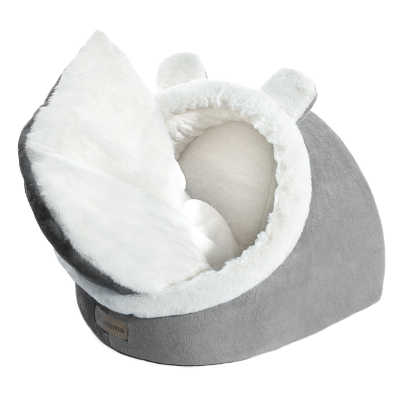 Оригинальный домик, визуально напоминающий виг-вам. Поролоновый каркас отлично держит форму. Внутри - съемная мягкая подушка. Размер изделия: 370*370*340мм. Цвета в ассортименте.
