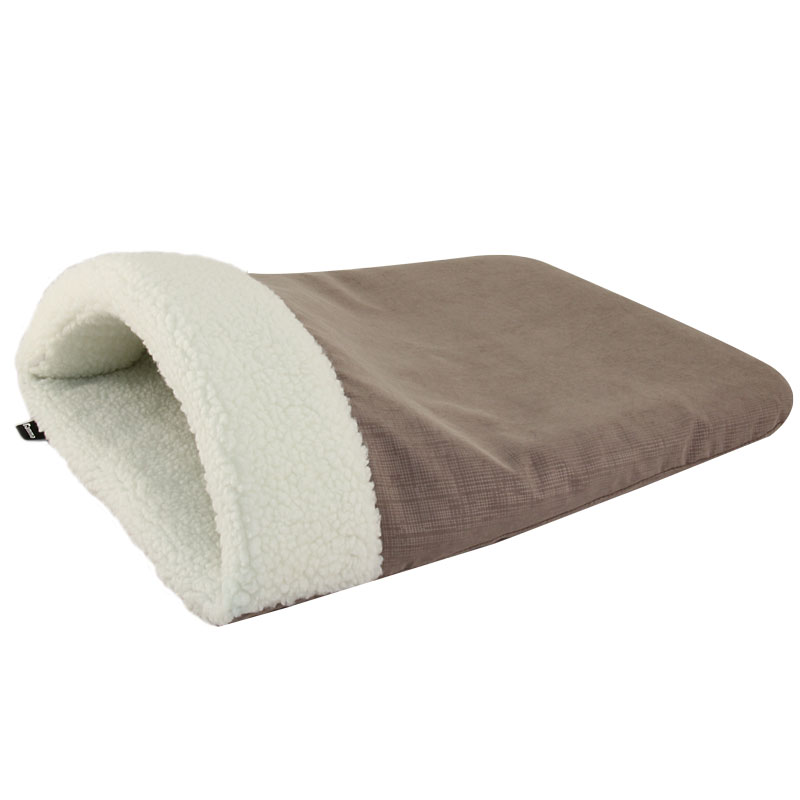 Мягкий бескаркасный домик-тоннель снаружи выполнен из светлой искусственной овчины и бежевого велюра. Внутри изделия - синтепоно-паролоновая основа. Размер изделия: 400*480*110мм. Цвета в ассортименте.