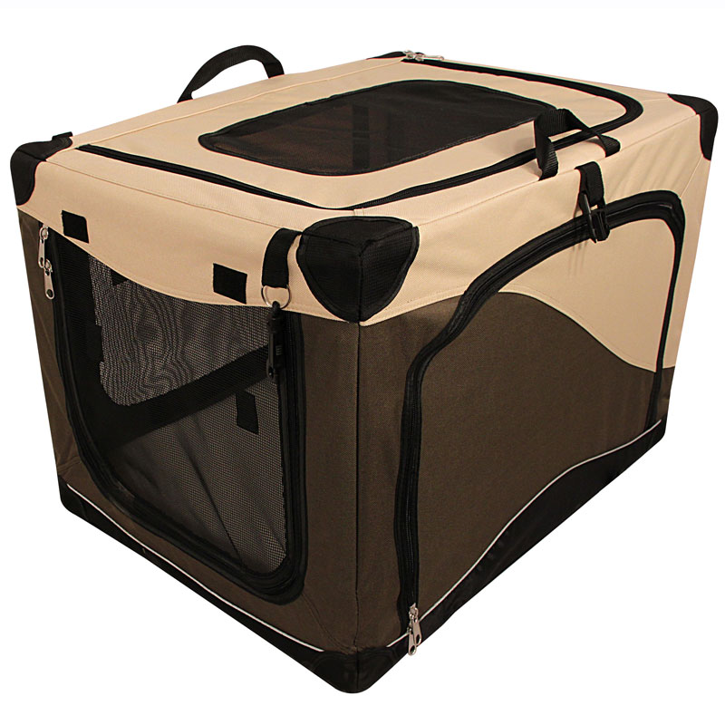 Складной дом-тент для животных - оптимальное решение для отдыха за городом, работы на выставках и для комфортной транспортировки питомца в автомобиле. Тент прямоугольной формы оснащен большим вентиляционным окном и просторным входом, которые легко закрываются на молнию. В комплекте изделия также есть съемная подстилка, очень удобная для отдыха животного. Тентовое покрытие изготовлено из прочного синтетического экоматериала, а сама конструкция легко складывается в удобную сумку, не занимая много места. Дно дома-тента изготовлено из водонепроницаемого материала. Цвет изделия: бежево-коричневый. Размер: 910х610х580мм.