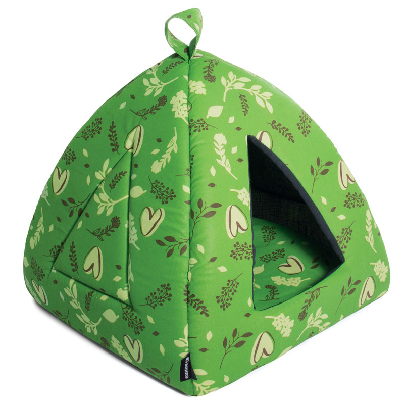 Оригинальный домик, визуально напоминающий виг-вам. Поролоновый каркас отлично держит форму. Внутри - съемная мягкая подушка. Размер изделия: 370*370*340мм. Цвета в ассортименте.