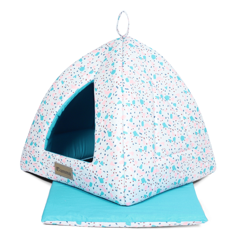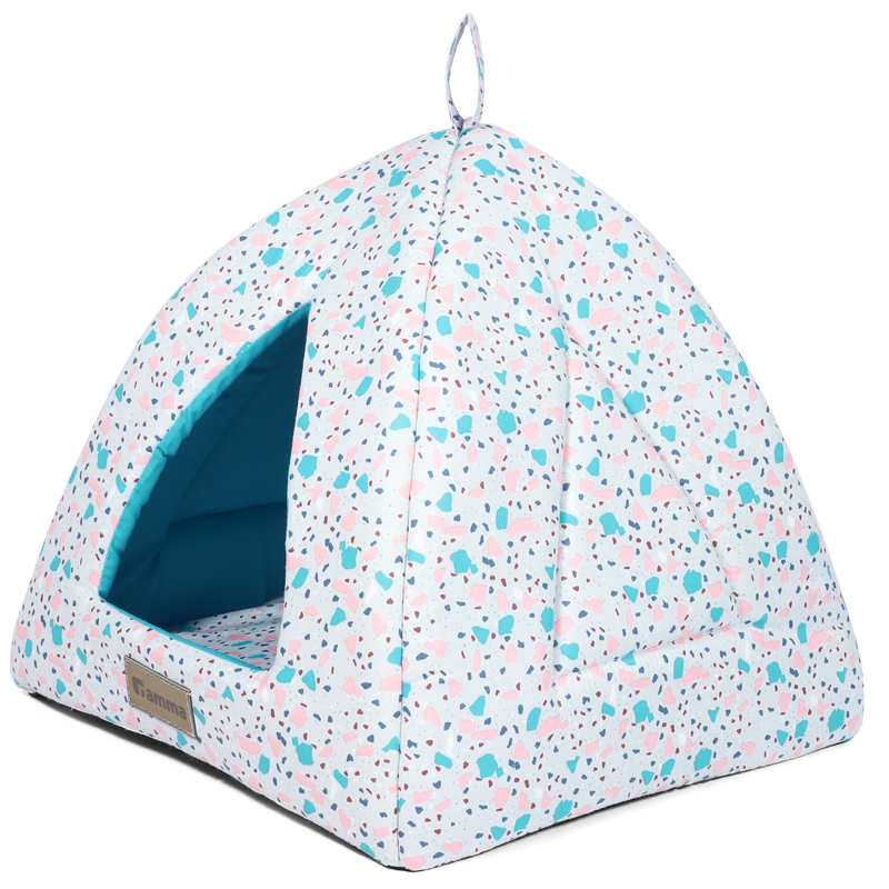 Оригинальный домик, визуально напоминающий виг-вам. Поролоновый каркас отлично держит форму. Внутри - съемная мягкая подушка. Размер изделия: 370*370*340мм. Цвета в ассортименте.
