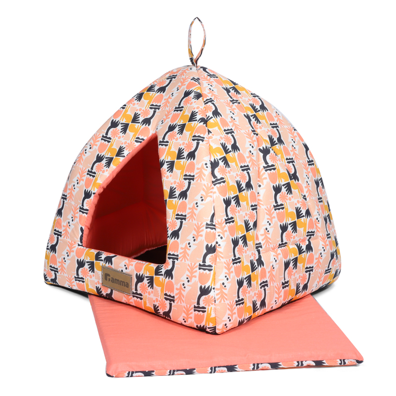 Оригинальный домик, визуально напоминающий виг-вам. Поролоновый каркас отлично держит форму. Внутри - съемная мягкая подушка. Размер изделия: 370*370*340мм. Цвета в ассортименте.