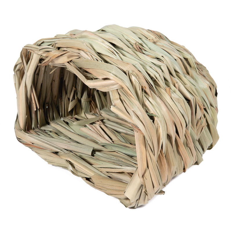 Необычный домик для мелких животных в форме лаптя выполнен из сухих стеблей и листьев луговых трав. Изделие уютно для питомцев и долго сохраняет тепло за счет плотного плетения. Такой плетеный домик - идеальное место для комфортного отдыха домашнего грызуна и оригинальный декор для любой клетки. Цвет: соломенный. Размер: 250*200*170мм.