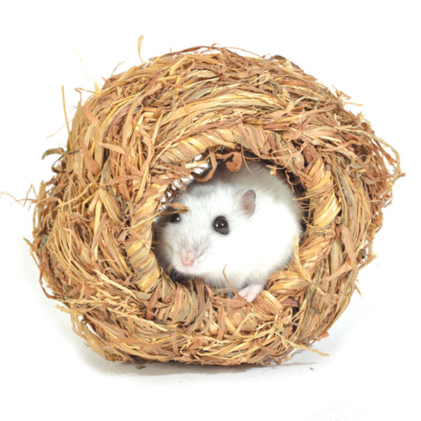 Оригинальный домик-шар для мелких животных выполнен из сухих стеблей и листьев луговых трав. Изделие компактно, уютно для питомцев и долго сохраняет тепло за счет плотного плетения. Оригинальный плетеный домик - идеальное место для комфортного отдыха домашнего грызуна и отличный декор для любой клетки. Цвет: соломенный. Размер: d100мм