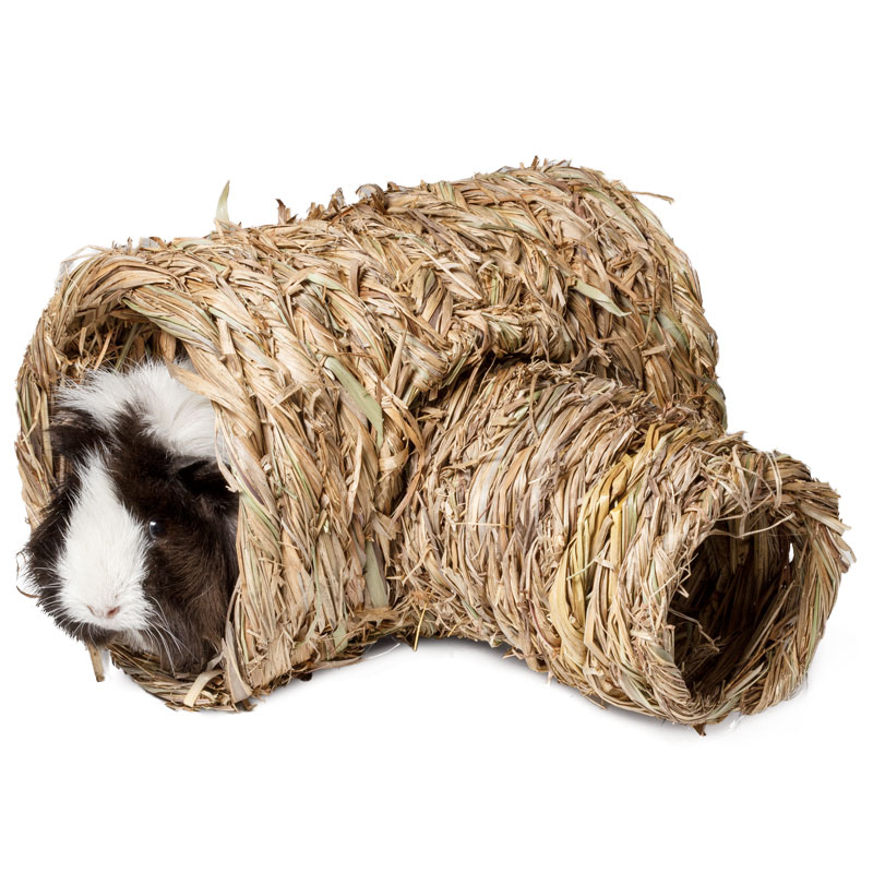 Оригинальный домик-туннель для мелких животных выполнен из сухих стеблей и листьев луговых трав. Изделие имеет восемь отверстий, которые служат не только входами в домик, но и отличным поводом для активной игры. Изделие компактно, уютно для питомцев и долго сохраняет тепло за счет плотного плетения. Такой плетеный домик - идеальное место для комфортного отдыха домашнего грызуна и стильный декор для любой клетки. Цвет: соломенный. Размер: d95*180мм.
