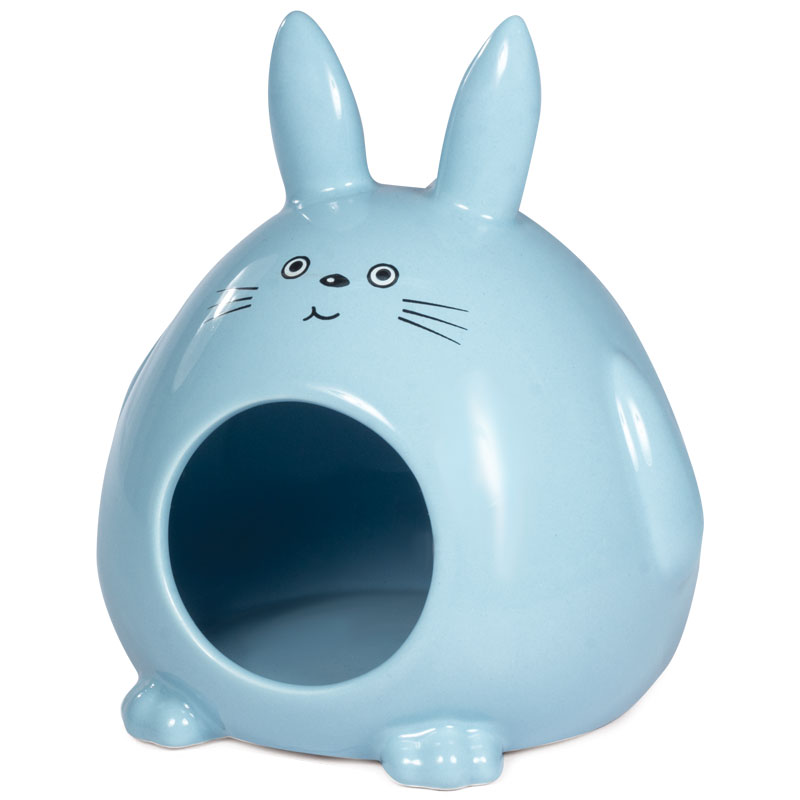 Оригинальный керамический домик для мелких домашних животных станет полезным и ярким украшением клетки вашего питомца. Такой домик безопасен для питомца и позволяет ему всегда быть в тепле, так как глина отлично держит температуру. Домик "Кролик" - надежное укрытие, комфортная зона отдыха и по-настоящему стильный аксессуар. Размер: 130*115*145мм. Цвет: голубой.