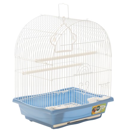 Клетка для птиц с полукруглой крышей - полезный аксессуар для владельцев пернатых питомцев небольшого размера. Прочная и удобная, такая клетка займет достойное место в любом интерьере, отвечая всем жизненным потребностям пернатых питомцев. В комплектацию изделия входят 2 кормушки-поилки, 2 жердочки и качели. Эмалированная клетка также оборудована удобной ручкой для переноски и специальным пластиковым наружным поддоном, облегчающим процесс уборки. Цвет: белый/сине-серый. Размер изделия: 300х230х390мм.