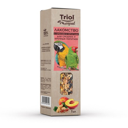 Лакомство для средних и крупных попугаев с орехами и фруктами, 110г, Triol Original