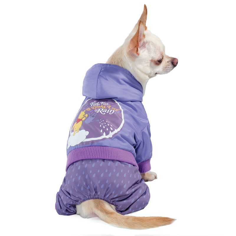 Дождевик из новой коллекции Disney Winnie the Pooh - это удобный и функциональный аксессуар для собак, который просто незаменим в дождливую погоду. Изделие защитит шерсть животного от дождя и грязи, а непродуваемая ткань - от сильного ветра. Костюм имеет стильный дизайн, а универсальный фасон не стесняет движений питомца во время прогулки. Дождевик также имеет капюшон и фиксируется при помощи заклепок на животе, а на штанинах предусмотрены удобные резинки, препятствующие попаданию грязи и влаги снизу. Длина по спинке: 200мм; Цвет: лиловый.