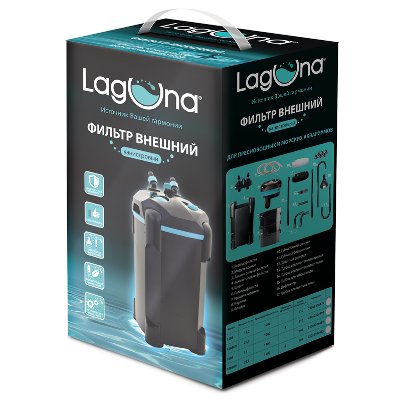 Фильтр внешний 1408, 17Вт, 1400л/ч, 230*230*485мм, Laguna