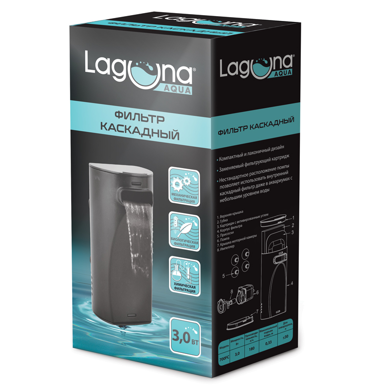 Фильтр внутренний каскадный 700FC, 3Вт, 180л/ч, 52*62*130мм, Laguna