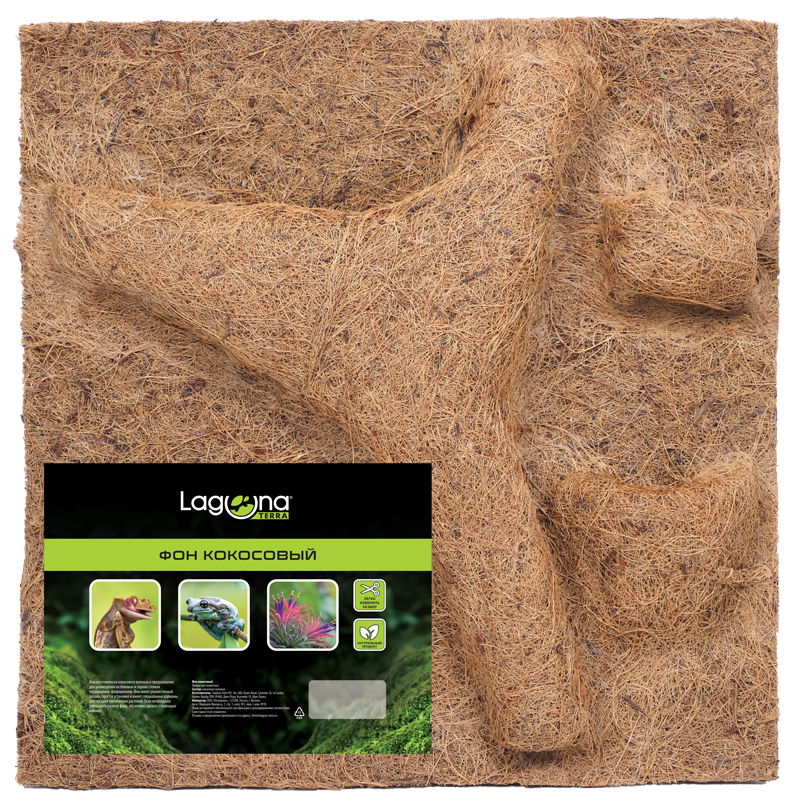 Фон изготовлен из кококового волокна и предназначен для размещения на боковых и задних стенках террариумов, флорариумов. Фон имеет реалистичный дизайн, прост в установке и имеет специальные карманы для посадки тропических растений. Если необходимо уменьшить размер фона, это можно сделать с помощью ножниц.