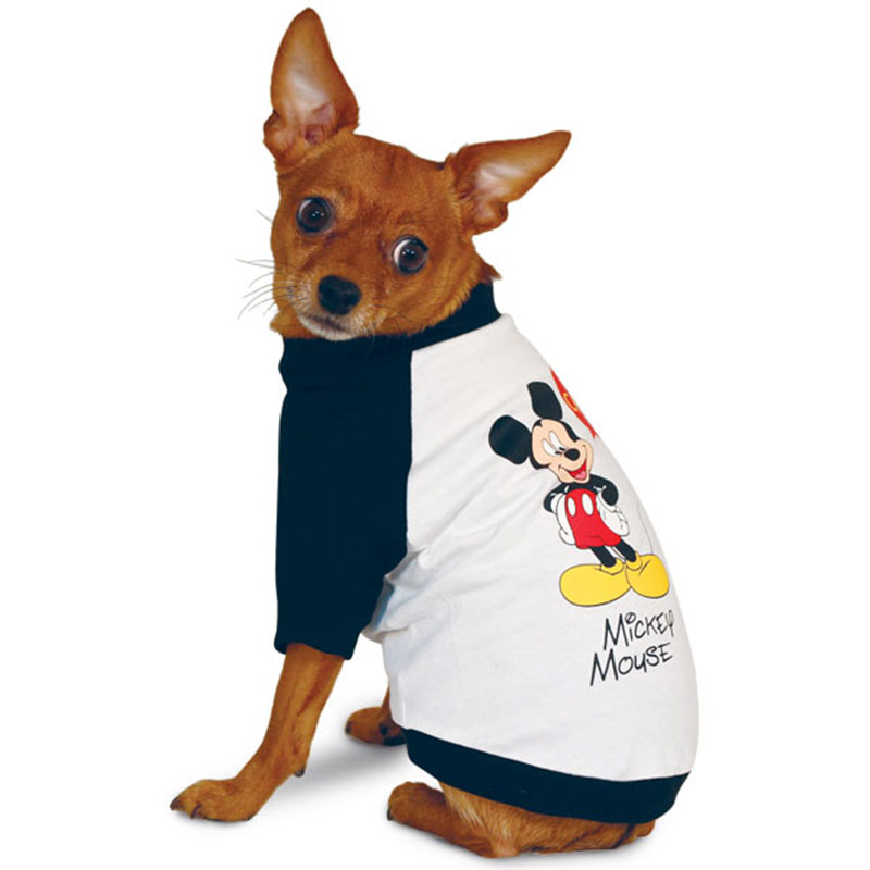 Хлопковая футболка с ярким принтом Mickey для питомцев в тренде. Длина по спинке: 320мм; обхват груди: 460мм; обхват шеи: 320мм. Цвет: черный с белым; принт: Mickey.