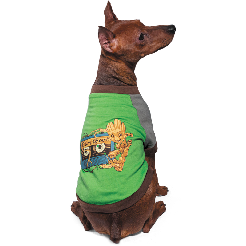 Футболка в ярком дизайне Грут подойдет для ношения в прохладную и теплую погоду, а также для защиты от пыли и холода. Модное цветовое сочетание и дизайнерский принт не оставит вашего питомца не замеченным. Ткань не потускнеет даже после многократных стирок.