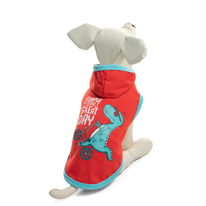 Стильный и функциональный элемент одежды для собак на каждый день. Футболка с капюшоном "Динозаврик" имеет удобный для питомца крой, стильный дизайн и модный принт на спине. Футболка надевается черед голову, а универсальный фасон не стесняет движений питомца во время прогулки. Размеры изделия: 200х340х240мм. Цвет: красный.