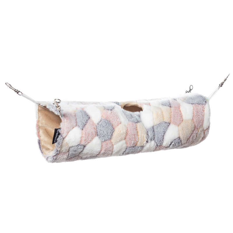 Гамак-туннель "Дюкер" для мелких животных обязательно понравится вашему питомцу. Выполнен из мягкого плюшевого материала. Легко подвешивается в клетке при помощи карабинов. Цвет: разноцветный. Размер гамака: 340*160*15мм.