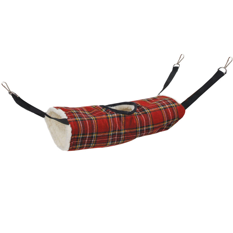 Гамак для мелких животных обязательно понравится вашему питомцу. Сшит из материала, который легко моется и чистится. В комплект входят карабины, с помощью которых можно повесить гамак в клетке. Подходит для хорьков, крыс, хомяков, дегу и других грызунов. Цвет: красный в клетку. Размер гамака: 350*170мм. Размер гамака с креплениями: 760*170мм.
