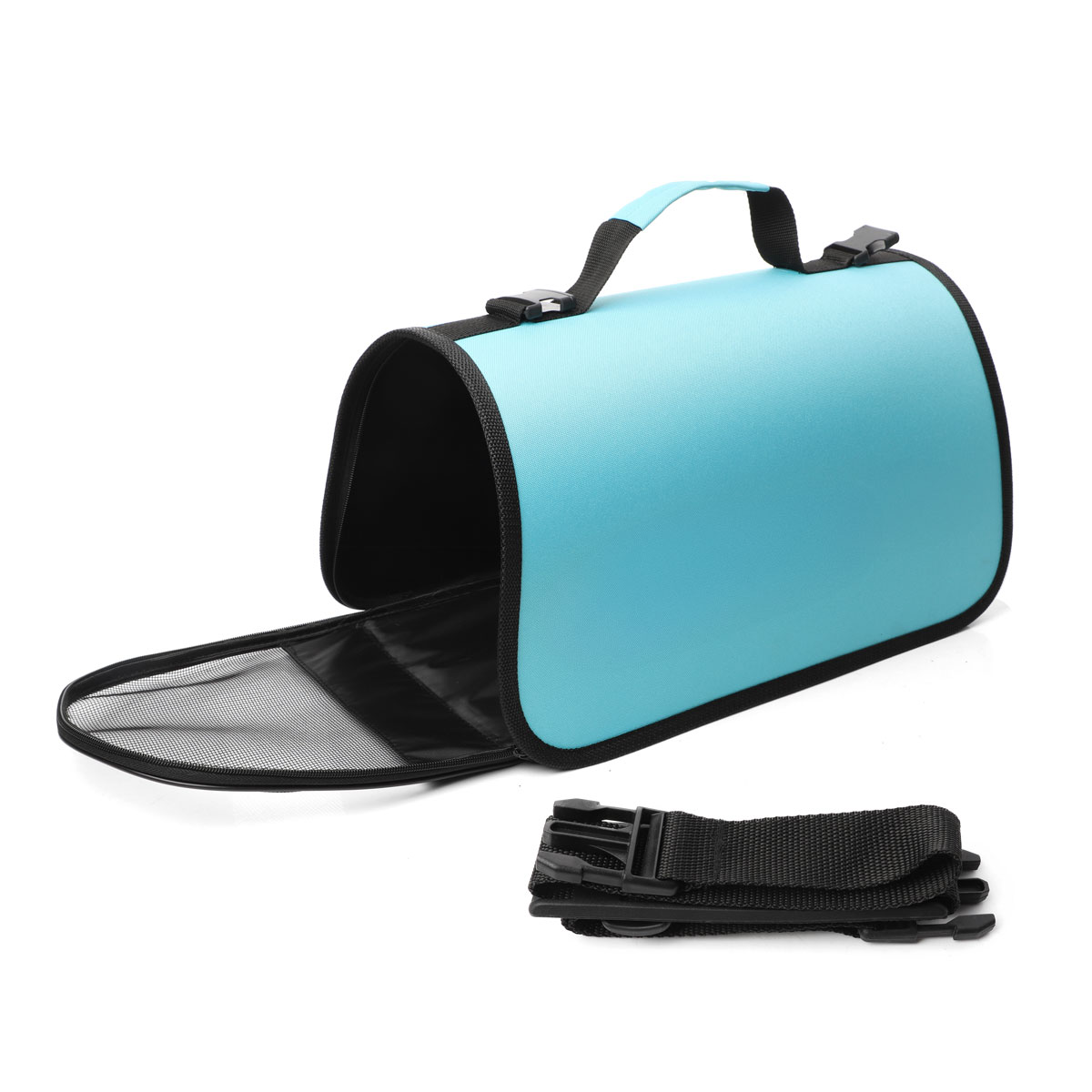 Легкая, вместительная и эргономичная сумка-переноска для домашних животных. Пластиковый каркас обеспечивает сохранность формы сумки-переноски в собранном виде. Изделие имеет удобную ручку с накладкой. Размеры сумки 430*240*240мм. Цвет: бирюзовый