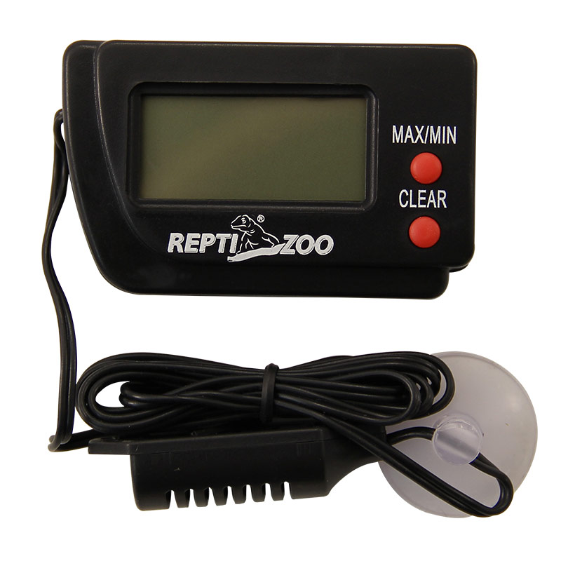 При содержании террариумных животных необходимо постоянно мониторить климатические условия в террариуме. Для отслеживания температуры воздуха применяется термометр. При использовании электронного термометра SH105 не обязательно помещать его внутрь террариума, где на него может воздействовать излишне влажная или теплая среда, достаточно только поместить щуп термометра в террариум. Диапазон измерения от 20 до 40 градусов С°. Термометр работает от батарейки (входит в комплект), показания температуры выводятся на жидкокристаллический дисплей.