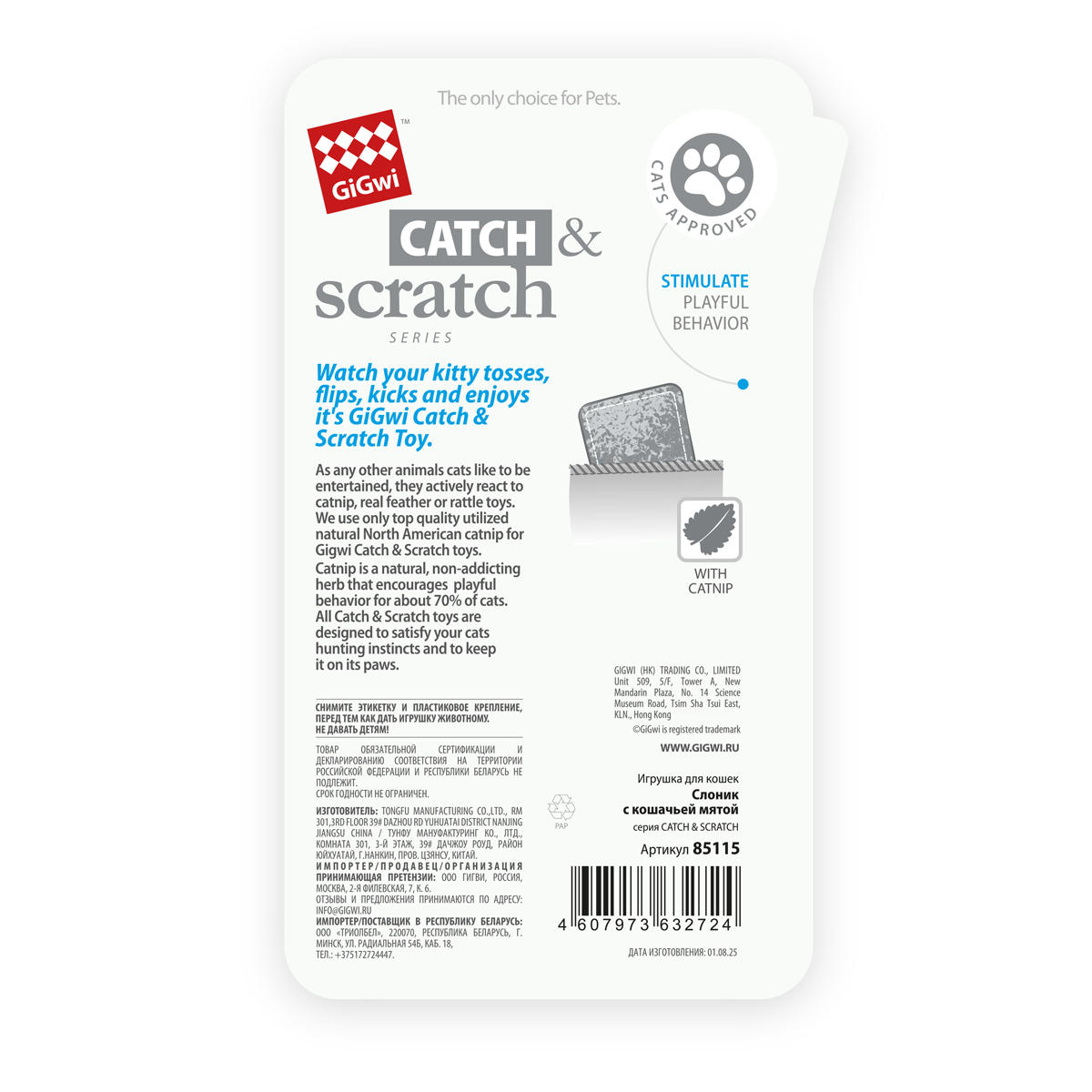 GiGwi CATCH & SCRATCH Игрушка мягкая для кошек "Слоник с кошачьей мятой", 140мм