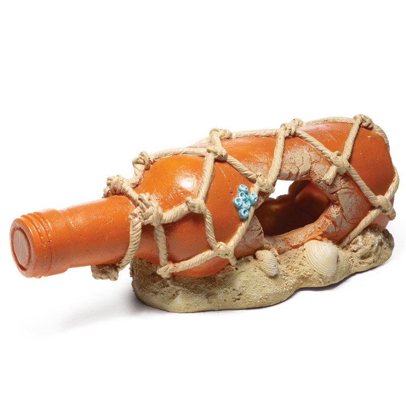 Этот функциональный и максимально реалистичный грот, стилизованный под старинную бутылку - незаменимый элемент для оригинального оформления любых пресноводных и морских аквариумов. Этот грот послужит дополнительным укрытием для небольших рыб, отвечая тем самым не только за эстетику, но и принося обитателям аквариума реальную пользу. Такой грот может быть использован как самостоятельный элемент декора - для оформления небольшого аквариума, так и в комплекте с другими гротами, объемными фонами и искусственными растениями - для оформления аквариума большого объема. Изготовленный из нетоксичной полиэфирной смолы, очень прочный и долговечный, удобный в эксплуатации и совершенно безвредный для аквариумных жителей, этот грот прослужит вам долгие годы, украшая собой ваш "компактный подводный мир" - на радость вам и его обитателям.