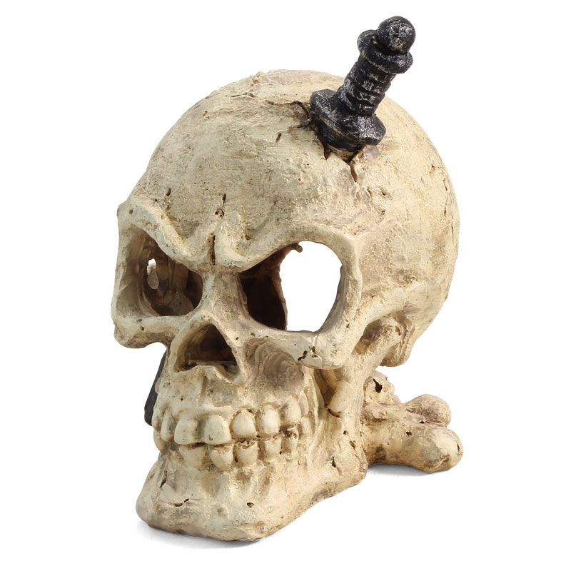 Небольшой реалистичный грот, стилизованный под череп ископаемого примата - элемент для оригинального оформления любых пресноводных аквариумов, а так же для террариумов. Этот грот послужит дополнительным укрытием для маленьких рыб, отвечая тем самым не только за эстетику, но и принося обитателям аквариума реальную пользу. Такой грот может быть использован как самостоятельный элемент декора - для оформления небольшого аквариума, так и в комплекте с другими гротами, объемными фонами и искусственными растениями - для оформления аквариума большого объема. Изготовлен из нетоксичной полиэфирной смолы, очень прочный и долговечный, удобный в эксплуатации и совершенно безвредный для аквариумных жителей.