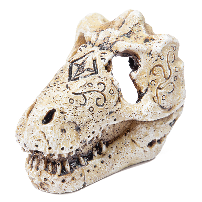 Небольшой реалистичный грот, стилизованный под череп ископаемого хищника - элемент для оригинального оформления любых пресноводных аквариумов, а так же для террариумов. Этот грот послужит дополнительным укрытием для маленьких рыб, отвечая тем самым не только за эстетику, но и принося обитателям аквариума реальную пользу. Такой грот может быть использован как самостоятельный элемент декора - для оформления небольшого аквариума, так и в комплекте с другими гротами, объемными фонами и искусственными растениями - для оформления аквариума большого объема. Изготовлен из нетоксичной полиэфирной смолы, очень прочный и долговечный, удобный в эксплуатации и совершенно безвредный для аквариумных жителей.